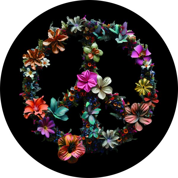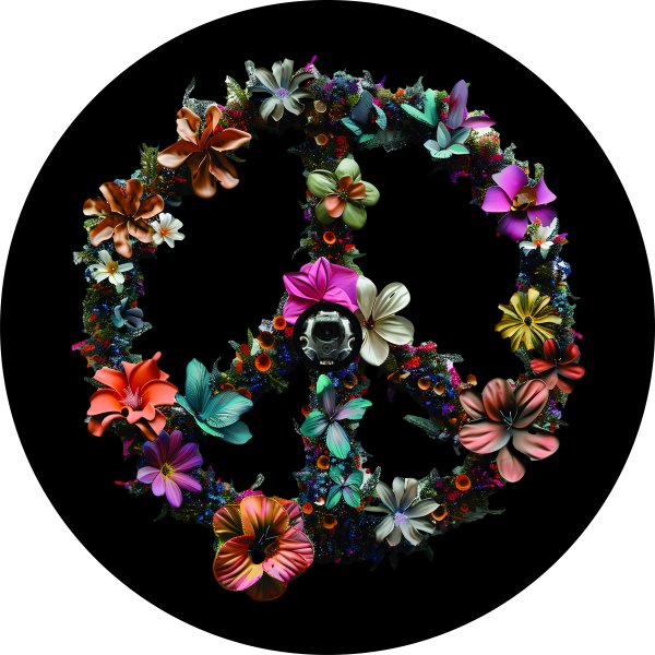 Enhance your vehicle's appearance with the Assorted Flowers Peace Sign Tire Cover!