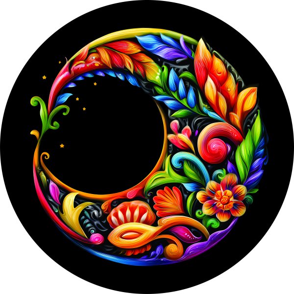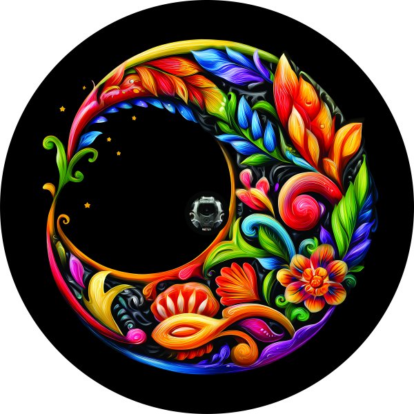 Enhance your vehicle's appearance with the Floral Crescent Moon Tire Cover!