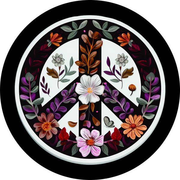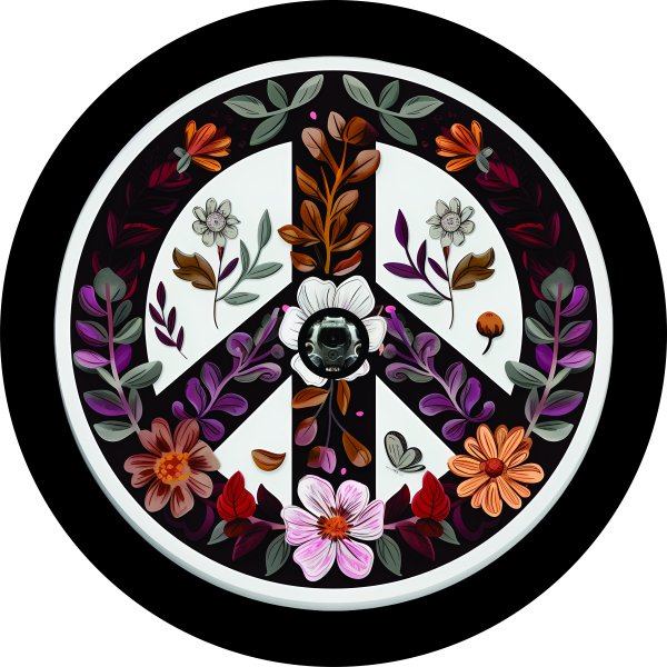 Enhance your vehicle's appearance with the Floral Peace Sign Tire Cover!