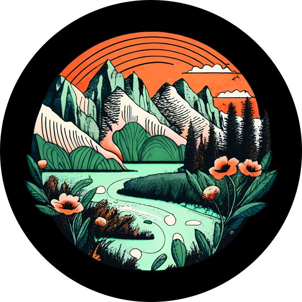 Introducing the Mountain River Runs Through Flowers Spare Tire Cover, handcrafted in the USA by Custom Grafix. This cover is made from heavy-duty, automotive and marine-grade, 32-ounce expandable vinyl. It is secured in place by a durable shock cord that is sewn into the back edge. Using a state-of-the-art printing process and UV-resistant inks, this cover ensures the logo remains detailed and long-lasting, able to withstand direct sunlight and harsh weather while maintaining its appearance year after year. Each cover is designed to fit tires up to 37 inches in diameter, ensuring a precise fit. This product is officially licensed and made 100% in the USA. Protect your spare tire with this high-quality vinyl tire cover from Tire Covers Plus!