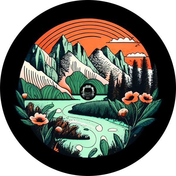 Home > Mountain River Runs Through Flowers Spare Tire Cover