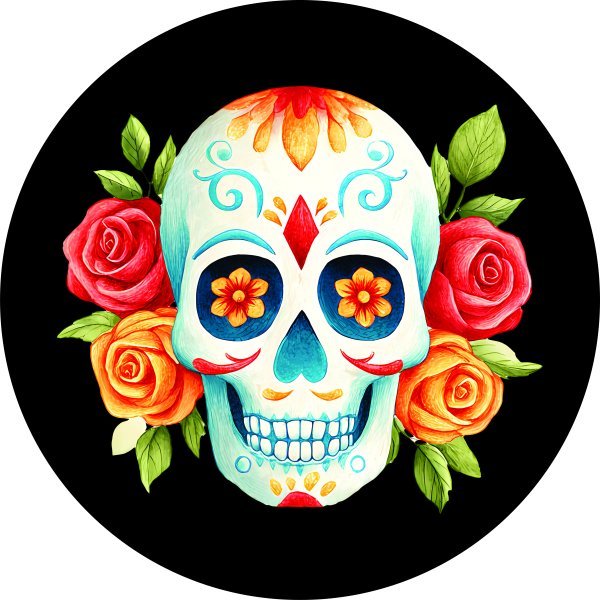Skull with Roses Spare Tire Cover Skull with Roses Spare Tire Cover