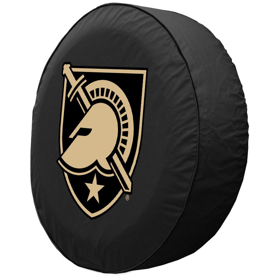 Our United States Military Academy Black Knights spare tire cover is hand-made in the USA by Holland Bar Stool Co. A state-of-the-art printing process utilizing UV-resistant inks ensures that the Black Knights logo is more detailed and durable to withstand direct sunlight and looks great year after year. The Commercial Grade Marine vinyl holds up in even the harshest weather conditions. Each United States Military Academy cover is made to order to fit tires up to 37" for an exact fit. This product is Officially Licensed and made 100% in the USA. If you need an exact fit wheel cover to protect your spare tire, slap one of these high-quality vinyl "Black Knights" tire covers on your vehicle or camper from Tire Covers Plus!